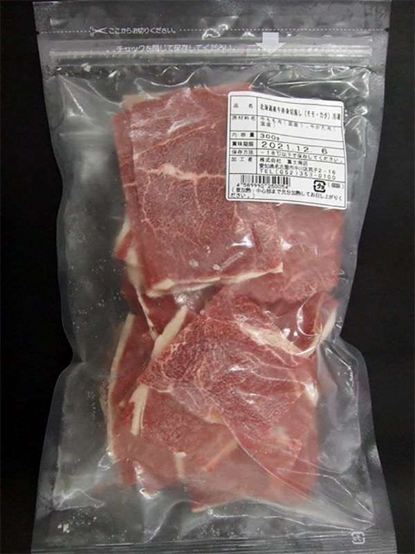国産牛モモ・カタ部位を使って、お料理の万能選手の“切り落とし用”にバラ凍結処理加工した商品です。